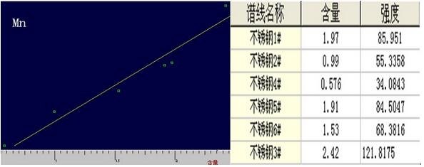 3. 不銹鋼中Mn的工作譜圖與相關數(shù)據(jù)