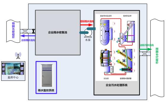 企業(yè)雨水通過專用雨水管路匯總到企業(yè)雨水收集池,在雨水收集池的總排放口監(jiān)測(cè)雨水流量。