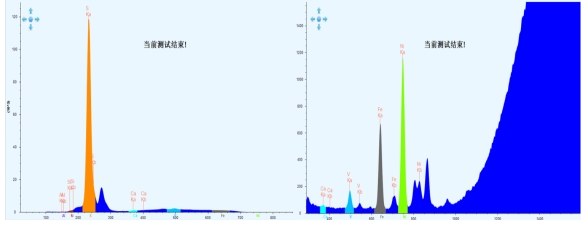圖3為測(cè)試中使用的一個(gè)未知樣(命名石油焦1#)的測(cè)試譜圖,在譜圖中可以明顯觀(guān)察到S、V、Fe、Ni元素的特征峰,并且在此樣品中還含有微量的Al、Si、Ca、Zn元素。使用該樣品進(jìn)行重復(fù)性測(cè)試后,檢測(cè)結(jié)果中S、V、Fe、Ni元素的重復(fù)性分別達(dá)到了0.28%、3.33%、1.10%和0.71%,表明該儀器對(duì)石油焦樣品具有很好的檢測(cè)效果。