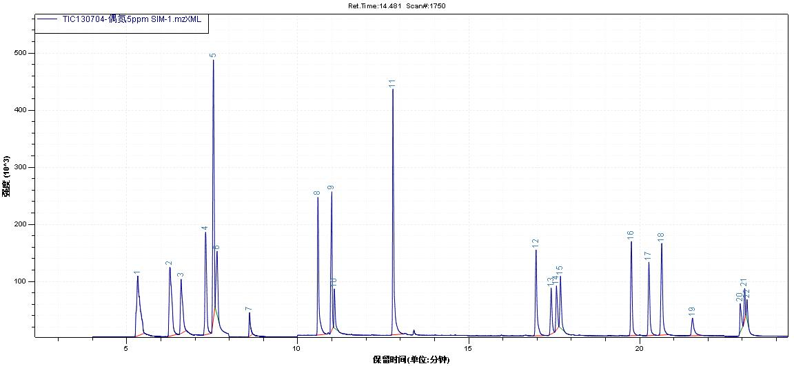樣品在檸檬酸鹽緩沖溶液介質(zhì)中,用連二亞硫酸鈉還原分解以產(chǎn)生可能存在的致癌芳香胺,用專用顧鑫萃取小柱提取溶液中的芳香胺,濃縮,定容,用GC-MS氣質(zhì)聯(lián)用儀進行測定。以目標(biāo)物的保留時間和標(biāo)準(zhǔn)質(zhì)譜圖定性,外標(biāo)法定量。